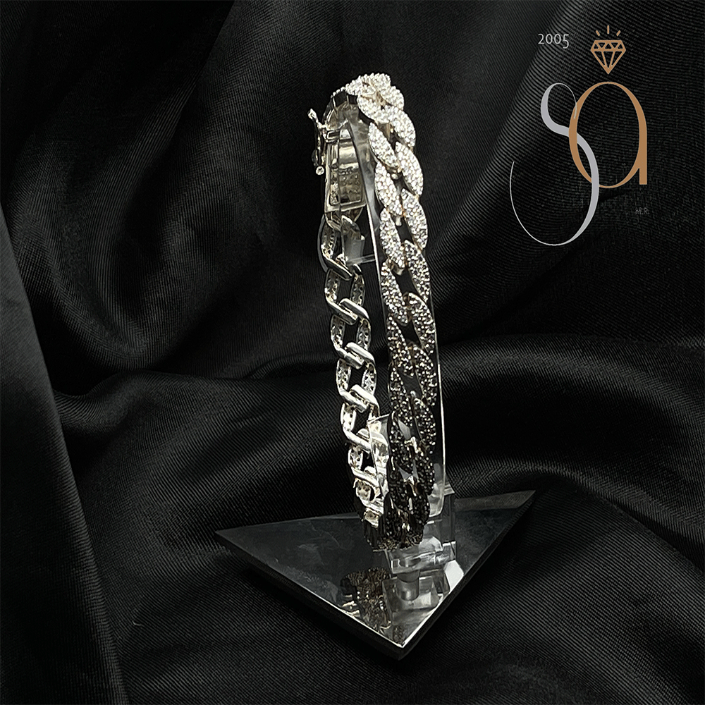 Pulso Barbado Cubano en Plata 925 con Rodio y Zirconias